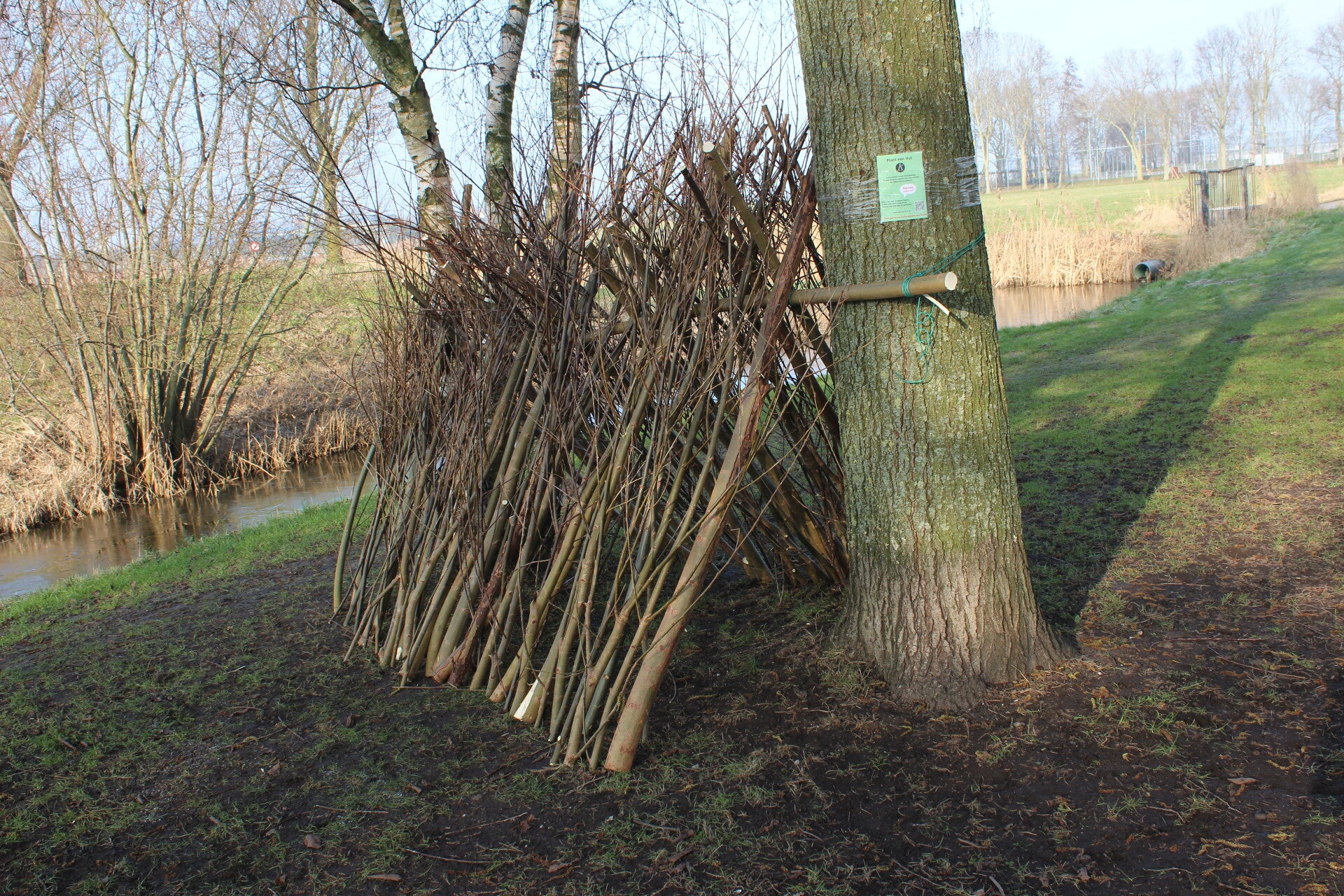 Dorpsgenoten in De Kwakel staken hun handen uit de mouwen en deden mee aan de landelijke actie Plant een Hut. Met wilgenstammen en takken, afkomstig uit het groendepot en anders als afval afgevoerd, bouwden zij een robuuste hut.